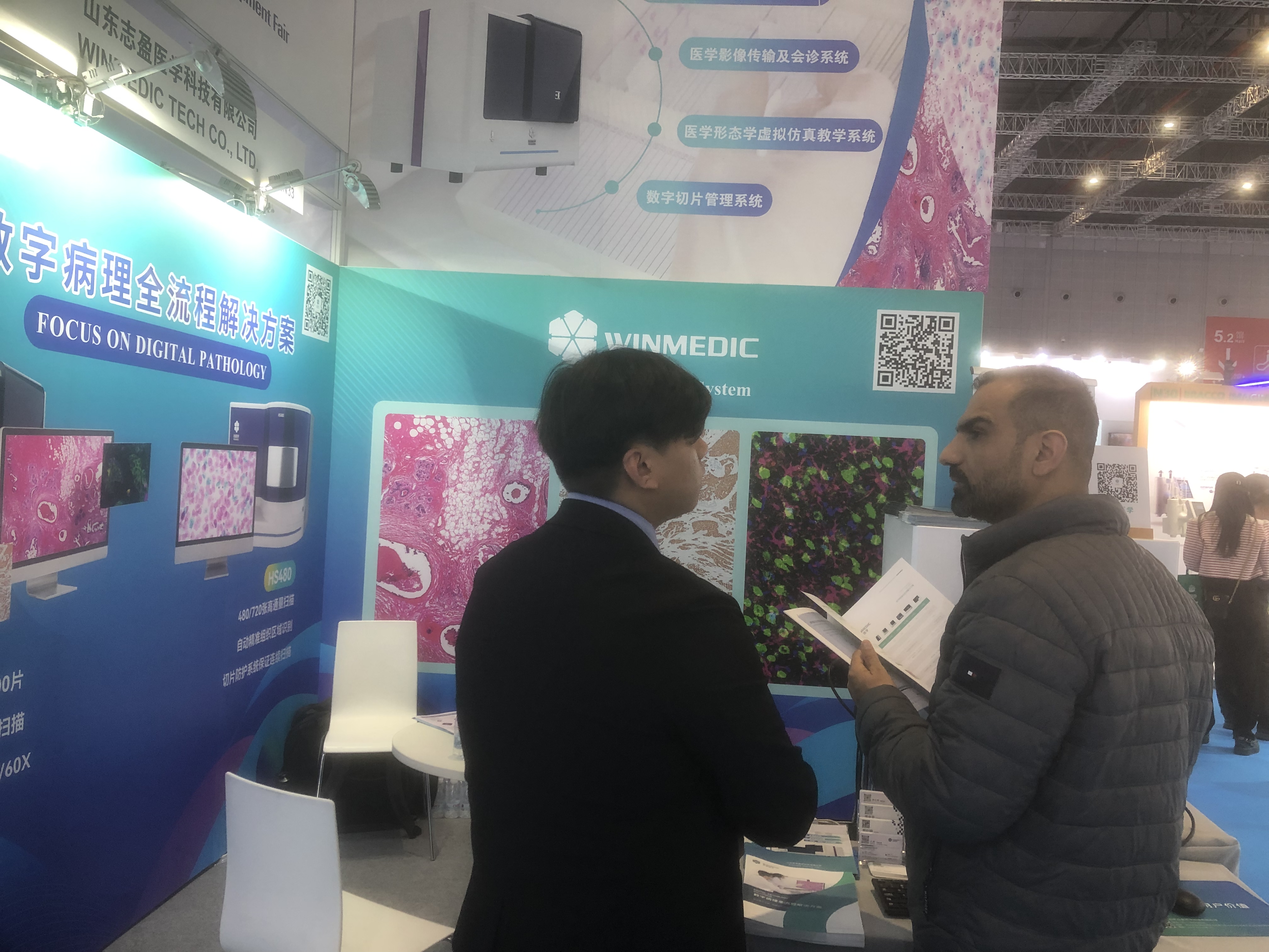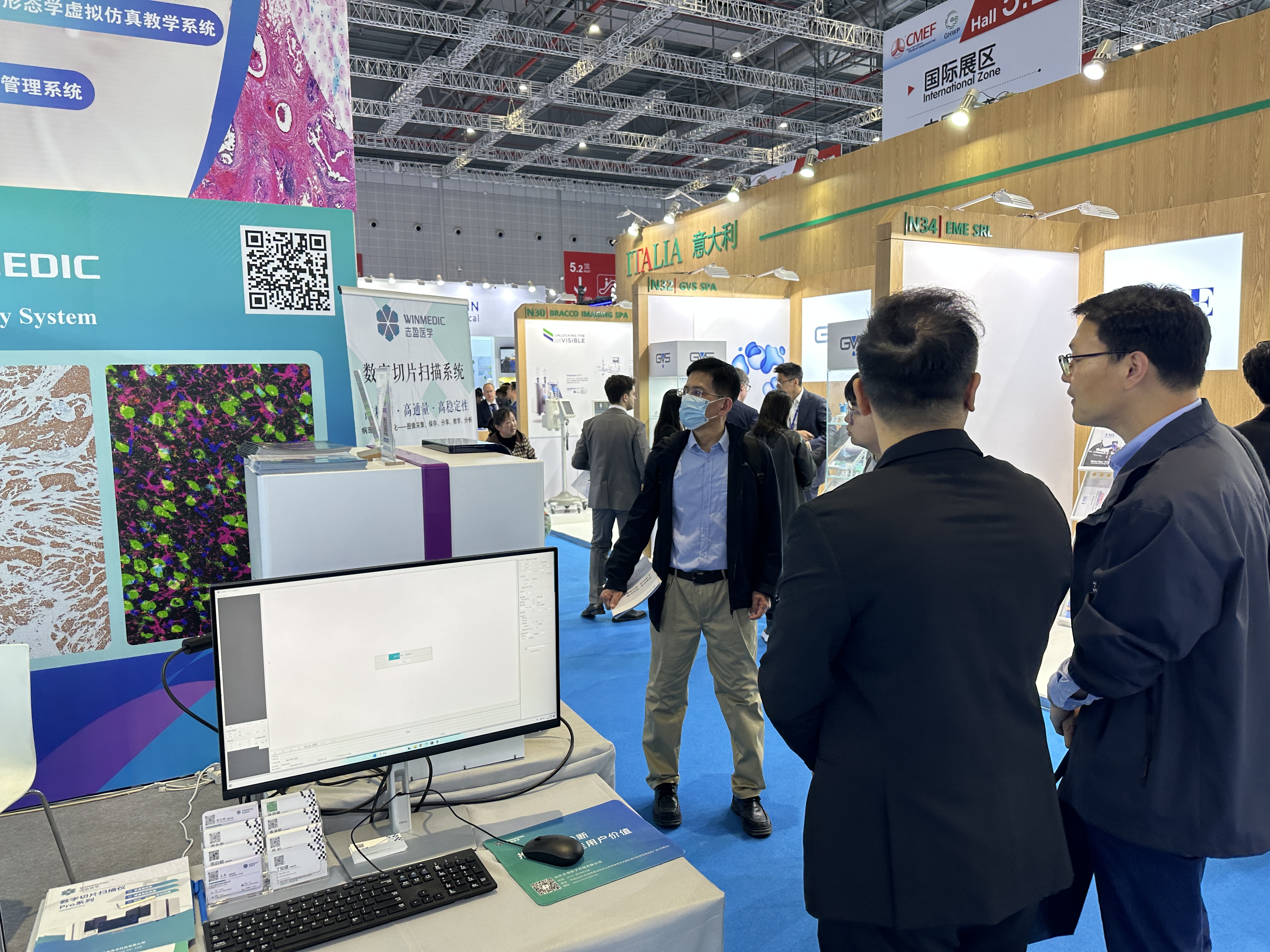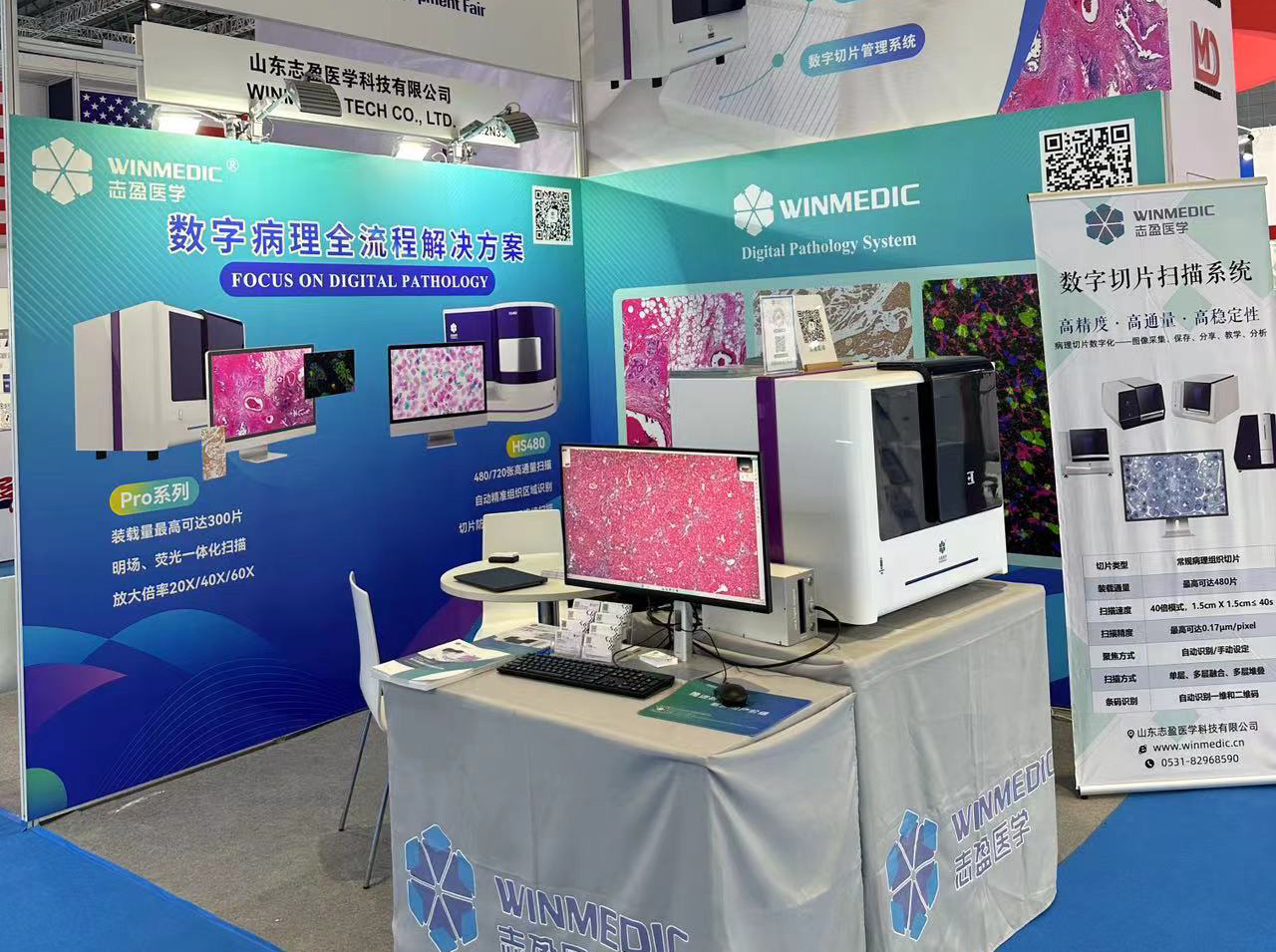 为期四天的展会里志盈医学携数字切片扫描仪Win300 Pro、Win60 Pro新产品在5.2馆N33志盈医学展位和1.1馆T28国药展位悉数登场,具备先进的图像分析技术,并带来一系列技术创新、优势整合、优化配置的数字病理整体解决方案,让病理科的工作流程“化繁为简”,也得到了参观者的一致好评,吸引众多医疗行业顶尖的专家学者、行业精英莅临展位,共同探讨医学装备技术创新、产业发展和临床应用的前沿话题。