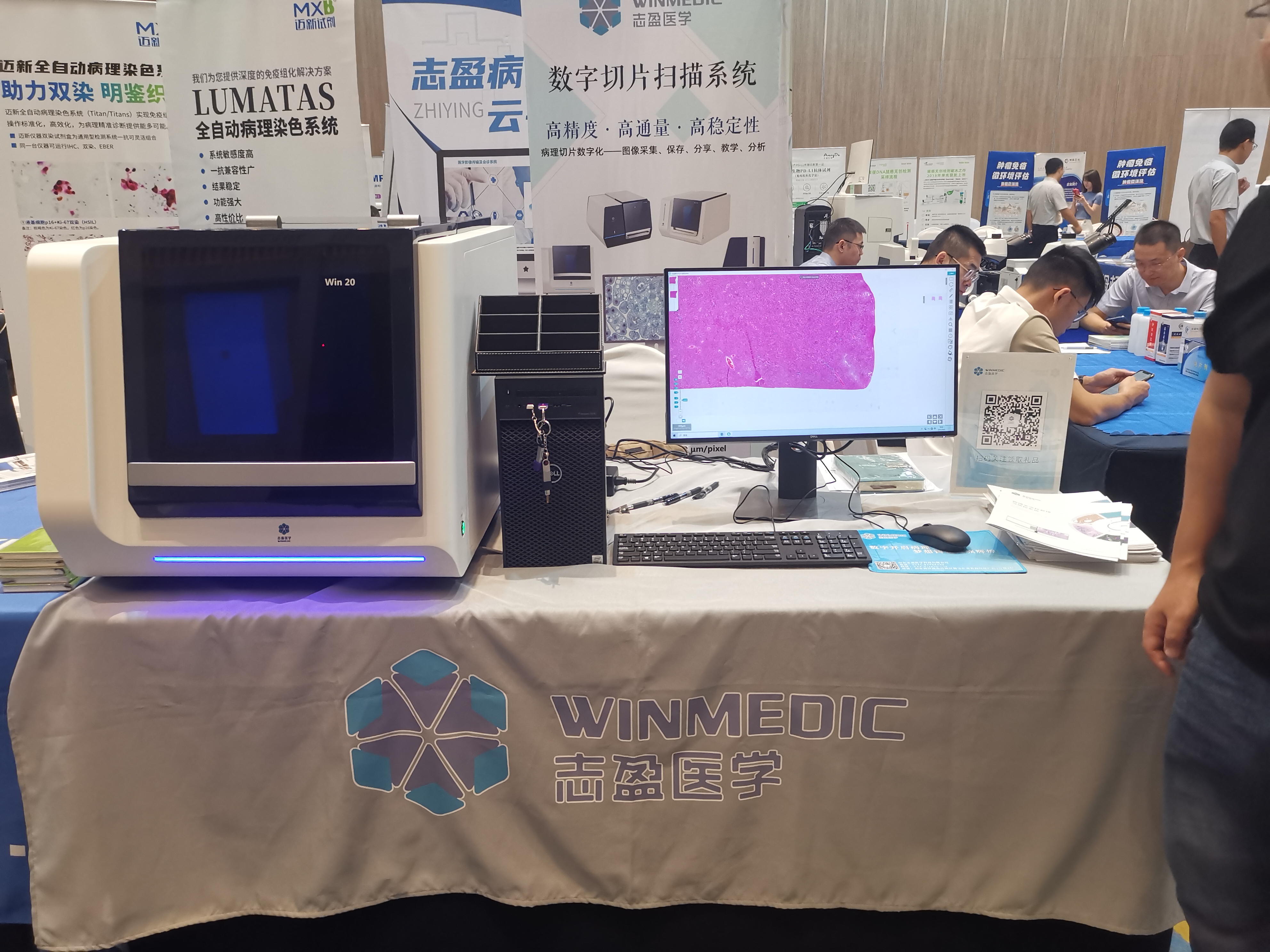 会议现场,志盈医学携数字切片扫描系统Win20及病理全流程管理与质控系统产品亮相,吸引了多位专家在展位驻足交流探讨并对产品给予充分肯定。