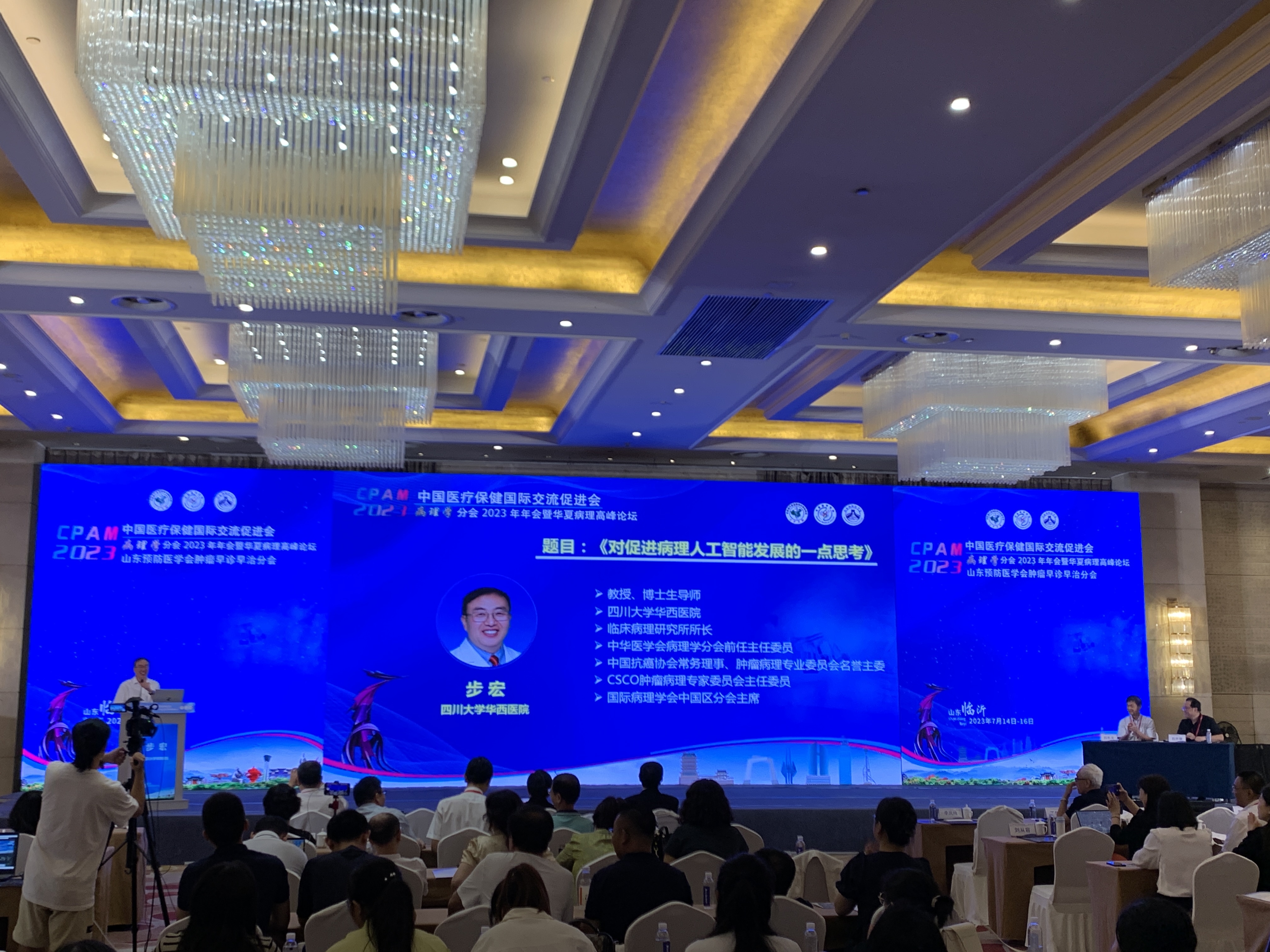 会议现场,多位专家教授分别作专题报告。中华医学会病理学分会前任主任委员、四川大学华西医院步宏教授在作《对促进病理人工智能发展的一点思考》的报告中提到,数字病理科进入了快速发展新阶段,我们要秉承小步快走,在变化中逐渐完善的理念,使智能AI更好赋能数字病理的发展。